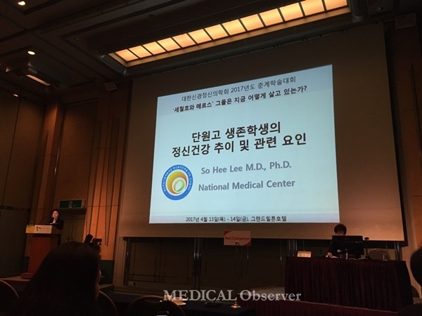 국립중앙의료원 정신건강의학과 이소희 과장은 13일 그랜드힐튼서울에서 개최된 대한신경정신의학회 춘계학술대회에 참석해 단원고 생존학생을 추적조사한 마음건강센터 자료를 후향적으로 검토한 결과를 공개했다.