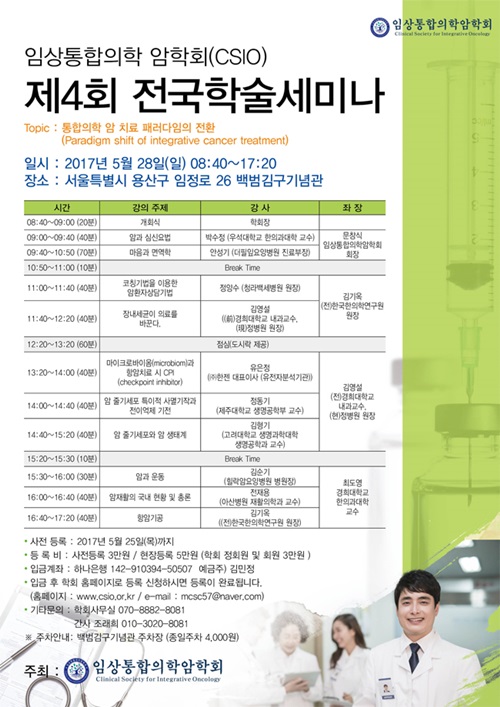 통합의학을 통해 암 치료의 새로운 장을 열어가고 있는 임상통합의학암학회가 오는 28일 백범기념관에서 ‘제4회 전국학술세미나’를 실시한다.