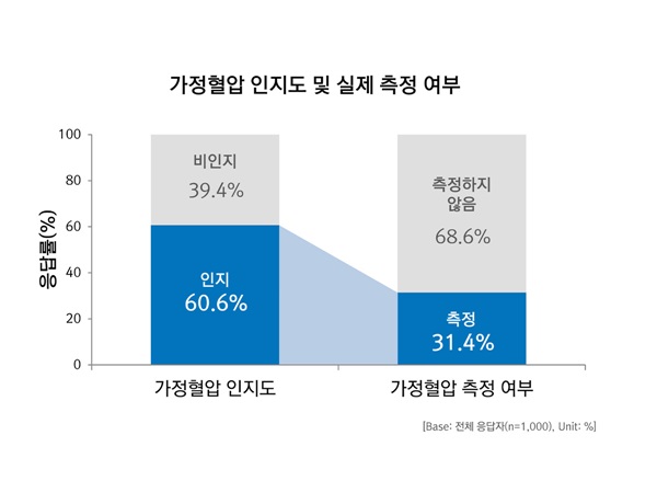 이번 설문 조사 결과에 의하면 가정혈압 측정에 대해 알거나 들어본 적이 있다고 한 응답자는 60.6%에 그쳤다. 더 큰 문제는 실제로 가정에서 혈압을 측정하는 환자는 그 절반 수준인 31.4%뿐이라는 것이다.