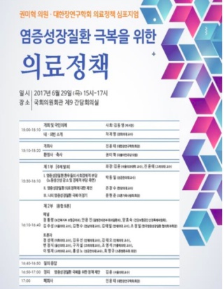 토론회에서는 성균관의대 박동일 교수가 염증성장질환 환우들의 사회경제적 부담, 한양의대 은창수 교수가 염증성질환 의료정책에 대한 제언 등을 주제로 발표를 진행한다.