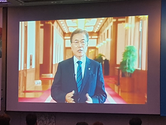 문 대통령은 '4차 산업혁명의 중심, 바이오의약품'을 주제로 28일 개최된 2017년 글로벌 바이오 콘퍼런스에 영상 축하메시지를 보내 바이오의약품 연구개발 투자를 늘리고 공정 경쟁을 위한 기반도 조성하겠다고 말했다.