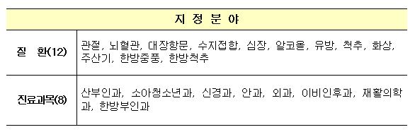 전문병원 지정이 가능한 분야는 관절 등 12개 질환, 산부인과와 소아청소년과 등 8개 진료과목이다.