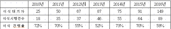폐이식을 받기 위해 질병관리본부 장기이식관리센터에 이식대기자로 등록하고 기다리는 환자가 2010년부터 2016년까지 한 해 평균 80명에 가깝다. 해가 바뀔수록 이식 건수가 점차 증가하고 있지만 전체 이식등록자의 64% 정도만 뇌사자로부터 이식을 받는 셈이다.