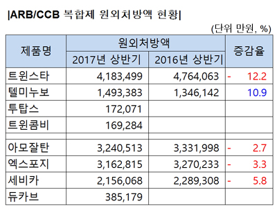 오리지널 트윈스타 선방...ARB/CCB 복합제 전반적 소폭 감소