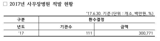 이들 기관에서 발생한 부당이득금(환수결정금액)은 3007억원 규모에 달한다.