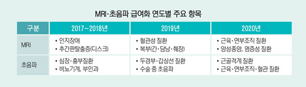 긍정적인 신호는 MRI와 초음파의 전면 급여화다. 구체적으로 살펴보면 간(상복부), 심장, 부인과 초음파, 척추 및 근골격계 질환 MRI 등 체감도가 높은 항목이 우선 급여적용되고 2020년까지는 모두 급여권에 편입된다.
