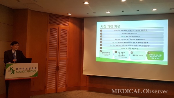 대한당뇨병학회는 28일 그랜드힐튼서울에서 열린 '당뇨병 및 내분비학 국제학술대회(ICDM 2017)' 기자간담회에서 새롭게 발간하는 '제2형 당뇨병 약제치료 지침 2017'을 공개했다. 2015년 제5판 당뇨병 진료지침 발표 후 당뇨병 약제 치료 편만을 국한해 개정 및 보완한 것이다.