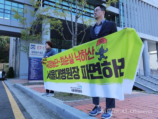 한편, 국정감사가 열린 충남대병원에서는 서울대병원 노조가 피켓시위를 했다.