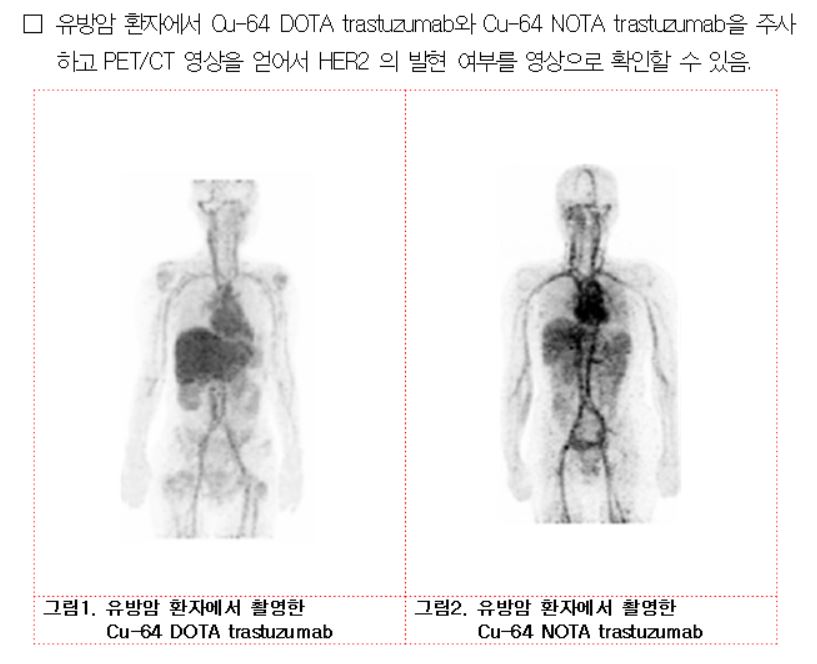 유방암의 HER2 발현 여부 확인을 위한 방사성의약품 ‘Cu-64 DOTA trastuzumab’을 이용한 양전자방출단층촬영(PET/CT) 임상시험은 일본과 미국에 이어 세 번째로 진행되며, 특히 ‘Cu-64 NOTA trastuzumab’을 이용한 임상시험은 세계 최초로 진행된다.
