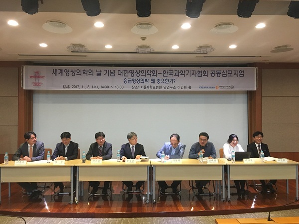 영상의학과 전문의들이 11월 8일 세계영상의학의 날을 맞아 대한영상의학회와 한국과학기자협회가 마련한 공동심포지엄에 나와 응급영상의학과 전문의 응급실 상주제도의 필요성과 이에 따른 보전책이 필요하다고 한목소리를 냈다.