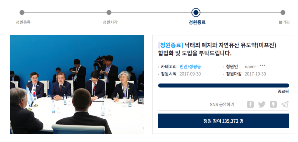 이 청원은 한달 만에 무려 23만 5372명의 지지를 얻으며, 소년법 폐지에 이어 2번째 국민청원이 됐다.