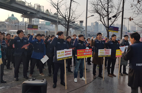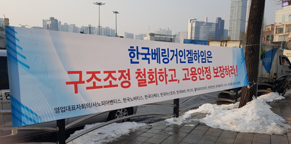 80여명의 베링거 직원들은 18일 서울역 본사 앞에서 구조조정 반대 집회도 가졌다.