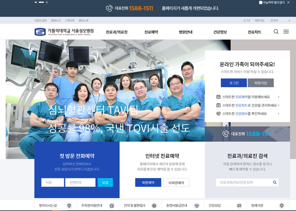 새 홈페이지는 사용자의 이용 편의성을 높이고자 SNS를 활용한 간편 로그인, 진료예약 간소화, 비회원 예약, 대리예약 등으로 사용자 지향적인 기능을 구현했다.