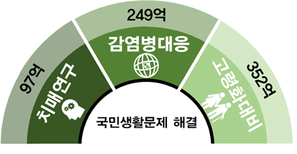 감염병에 효과적으로 대응하는 연구에도 249억원이 지원되고, 줄기세포 연구에도 352억원 등의 국가 예산이 들어간다.