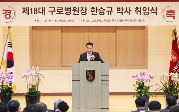 한승규 제18대 고대 구로병원장이 연구중심병원에 대한 제도적 지원과 투자 확대에 역량을 집중하겠다고 약속했다.