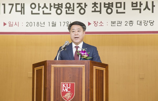 17일 안산병원 대강당에서는 제17대 안산병원장 최병민 박사의 취임식이 열렸다. 최 병원장의 임기는 2018년 1월부터 2019년 12월까지 2년이다.