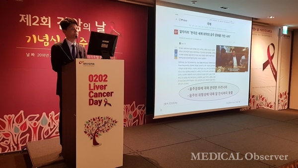 대한간암학회 박중원 회장(국립암센터 간암센터 소화기내과)은 "국내 간암의 3대 원인이 B형간염, C형간염, 알코올성 간염이다. 술은 엄연한 발암물질임에도 불구하고 우리나라에서 너무나 관대하게 여겨지고 있다"면서 "음주 문화를 개선하기 위해 적극적으로 대처하는 것이 중요하다"고 강조했다.