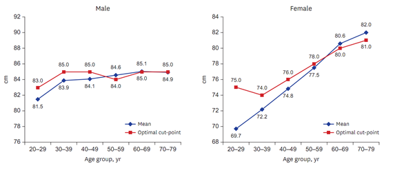 위험인자 두 개 이상이 기준점을 넘으면 비만으로 보고, 이를 바탕으로 일반적으로 사용되고 있는 비만척도인 체질량지수(BMI), 허리둘레, 허리둘레-키 비율 기준점을 새롭게 분석했다.