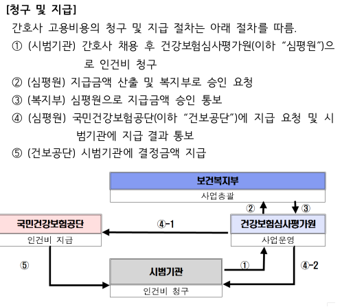 사업은 시범사업 참여기관이 간호사를 채용한 뒤 해당 간호사의 인건비(고용비용)를 건강보험에 청구하면, 건강보험에서 이를 월별로 지급하는 방식으로 진행된다.