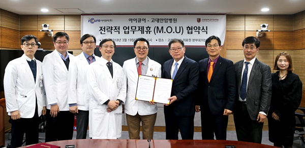 안암병원은 19일 본부회의실에서 아이큐어와 노인성 뇌질환약물 및 의료산업개발 공동연구를 위한 상호협약 체결식을 가졌다.