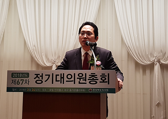 최대집 대한의사협회장 당선인이 경상북도의사회 대의원총회에 참석하면서 본격적인 행보를 시작했다.
