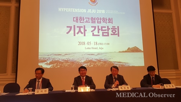 대한고혈압학회 진료지침제정위원회 신진호 간사(한양의대 심장내과)는 "혈압을 140/90mmHg 미만으로 낮추면 치료효과가 크다는 사실이 더욱 공고해지면서 심혈관질환 저위험군이 아니면 약물치료를 앞당겨 시작하도록 했다"며 "적극적인 혈압 조절의 필요성을 제시한 것"이라고 18일 롯데호텔제주에서 열린 'Hypertension JEJU 2018' 기자간담회에서 밝혔다.