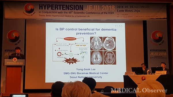 서울의대 이용석 교수(서울시보라매병원 신경과)는 19일 학술대회에서 "고혈압은 알츠하이머병을 포함한 치매의 위험요인으로, 중년에 고혈압이 있으면 노년에 인지저하 또는 치매 등이 발병한다는 점은 정설로 여겨진다"면서 "하지만 85세 이상의 고령에서는 연구 결과가 혼재돼 있다. 고령 또는 치매가 있는 환자의 혈압은 조심스럽게 접근해야 한다"고 강조했다.