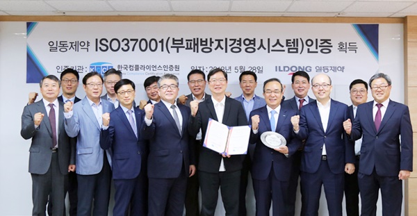 일동제약은 ISO 37001 인증을 위해 임직원 대상 교육 시행과 부패 방지 방침 선포, 부서 및 직무별 부패 리스크 평가, 내부 모니터링 및 감사 등 전사적 노력을 기울여 왔다.