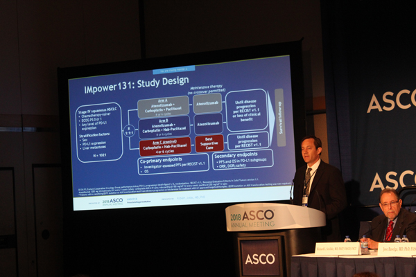면역항암제와 표준화학요법간의 가능성을 확인하기 위해 진행된 대규모 3상임상인 IMpower131 연구가 미국임상종양학회(ASCO)에서 발표됐다.