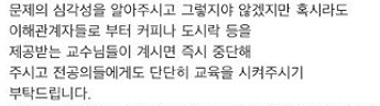 그는 문제 심각성을 인지해 이해관계자들로부터 커피나 도시락 제공받는 것을 즉시 중단하고 전공의들에게도 교육시켜줄 것을 당부했다.