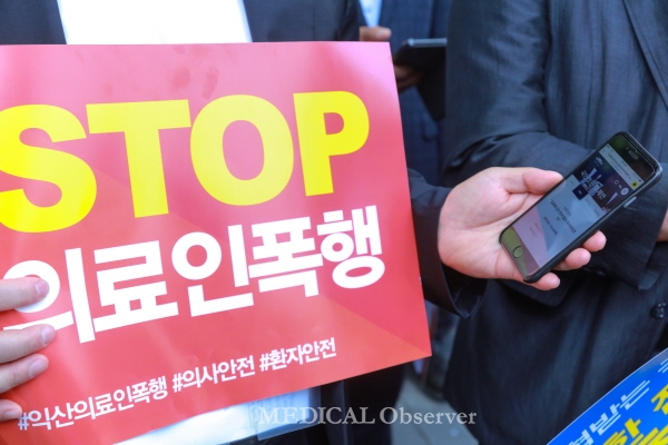 한편, 이날 참석자들은 응급실 의료인 폭행사건의 철저한 조사를 촉구하는 청와대 국민청원(https://www1.president.go.kr/petitions/294032)에 함께하는 퍼포먼스도 진행했다.