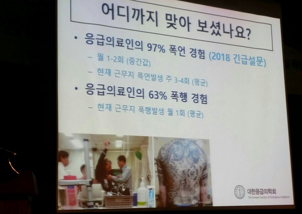 대한응급의학회 긴급 공청회 개최 ... 설문조사 결과 응급실 근무자 63% 폭행 경험