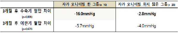 모바일 앱을 통해 자가 모니터링을 했을 때 수축기 혈압 수치가 유의미하게 감소한다는 것을 확인한 것이다.