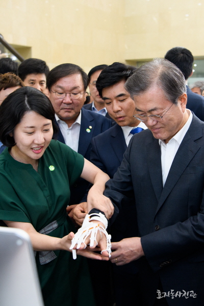 문 대통령은 "정부는 의료기기 산업을 미래 신산업으로 육성하겠다는 의지를 가지고 있다"며 "우리는 이미 세계적 수준의 의료 인력과 시스템을 갖추고 있다. 의사의 진료 경험과 병원의 연구 성과는 소중한 자산인 만큼 이를 현장에서 꼭 필요한 의료기기 개발로 이어지도록 하겠다"고 강조했다.