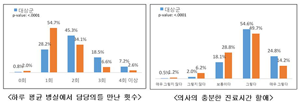특히 입원기간 중 의사와의 접촉이 평균 5.6회, 접촉시간이 32.3분 증가한 것으로 나타나, 전문의가 병동에 상주하고 있어 밀도 높은 입원환자 케어가 가능함이 확인됐다.