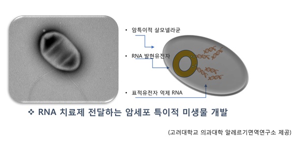 고려의대 알레르기면역연구소(소장 유영) 윤원석 교수팀은 연세의대 김병모 교수와 공동연구로 작은 간섭 RNA(small interfering RNA) 항암제를 효율적으로 전달해 항암효과를 유도하는 표적 치료용 신기능 미생물을 개발했다.