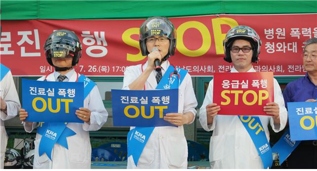 의사회 선재명 정책이사는 "응급실 등 의료현장에서 폭력이 근절될 수 있도록 국민들의 이해와 협조를 부탁한다"며 "현재 진행되는 국민 청원에 동참해달라"고 요구했다.