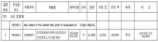 리피오돌울트라액(10ml)의 상하금액이 이달 중 19만원으로 인상된다.