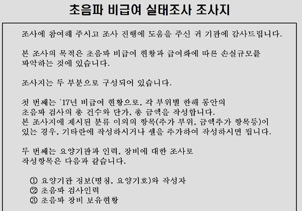 조사내용은 초음파·MRI 비급여 현황과 손실규모 파악과 구체적 급여화 방안 마련에 사용된다.