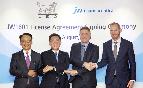 아울러 레오파마는 JW1601에 대해 한국을 제외한 전 세계 시장에서의 독점적 개발 및 상업화 권리를 획득하게 됐다. 한국에서의 권리는 JW중외제약이 보유한다.