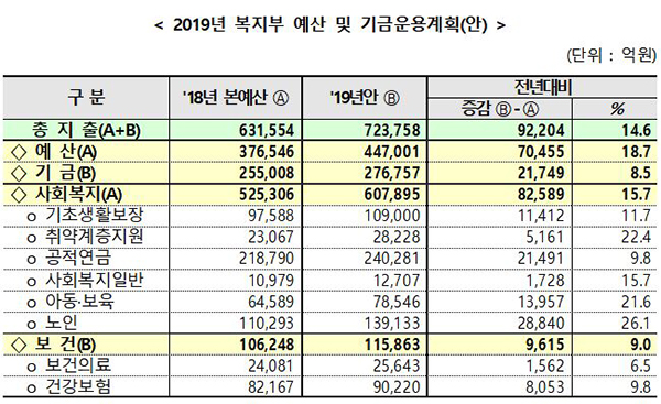 보건복지부는 이 같은 2019년 정부 예산(안)을 28일 확정, 발표했다.