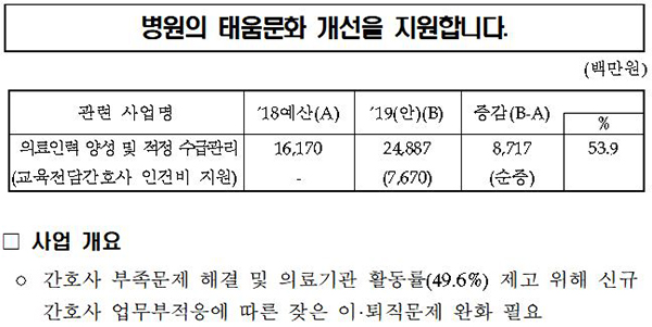 태움문화 개선을 목표로 '교육전담간호사' 배치도 추진한다.