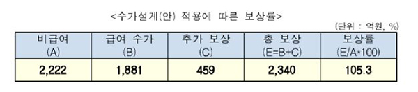 급여수가와 손실보상책을 병행해 의료계에 최종 투입되는 비용은 2340억원으로, 총 보상률은 전체 비급여 대비 105%가 된다.