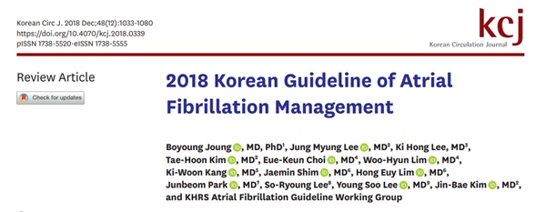 한편 이번 진료지침은 '2018 Korean Guideline of Atrial Fibrillation Management'라는 제목으로 대한심장학회지 지난달 31일자 온라인판에 실렸다.