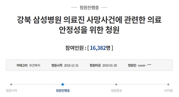 한편, 이번 사건으로 청와대 국민청원 게시판에는 강북삼성병원 의료진 사망사건 관련 청원 글이 게재됐다.