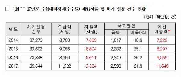 여기에 기획재정부에서 허가신청에 따른 수납액(세입) 80%를 인건비와 운영비 등에 사용토록 예산을 배정하고 있지만 제대로 지켜지지 않고 있다는 지적도 있다.