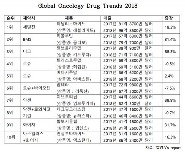 의약품 시장조사기관 아이큐비아(IQVIA)가 최근 'Global Oncology Drug Trends 2018'을 발표했다.