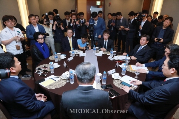 의협측은 이필수 전라남도의사회장을 단장으로, 김종웅 개원내과의사회장, 박진규 신경외과의사회 부회장, 연준흠 의협 보험이사로 구성됐다.