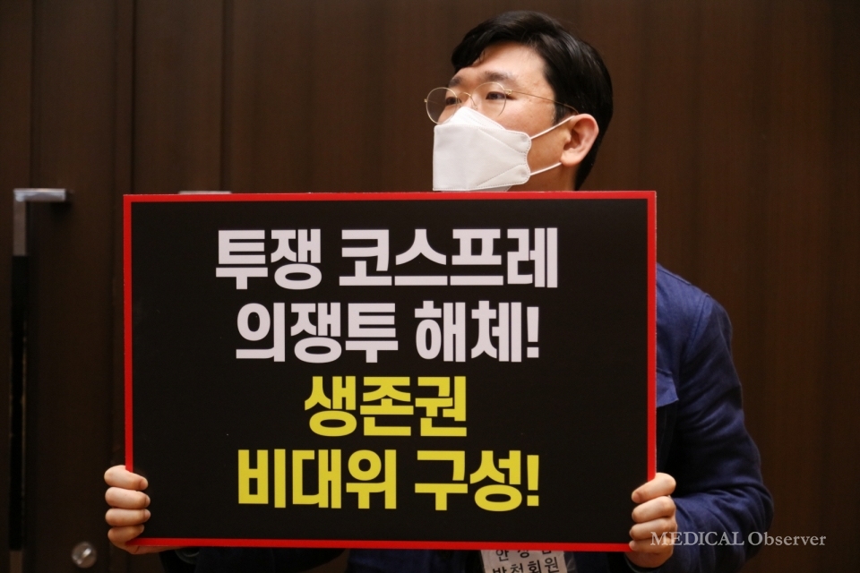 회원들은 현재 의협 집행부에서 결성한 '제2기 의쟁투'를 "투쟁 코스프레"라며 의쟁투를 해체하고 비대위를 구성할 것을 요구했다.