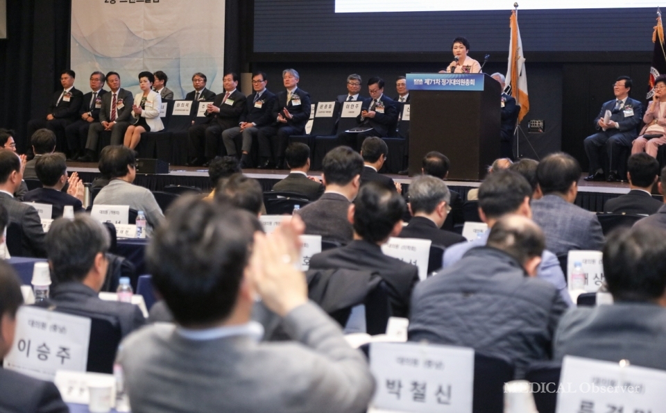 이날 정기총회에는 이기일 보건의료정책관이 박능후 보건복지부 장관의 축사를 대독하기 위해 참석했다.